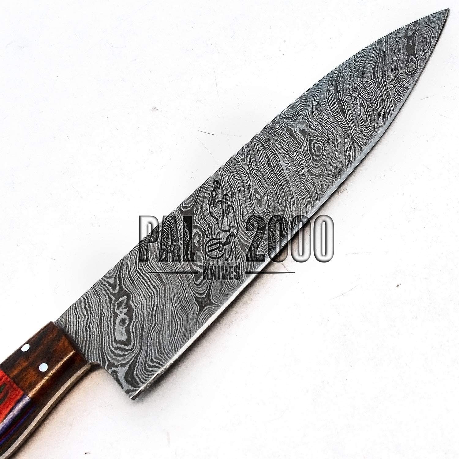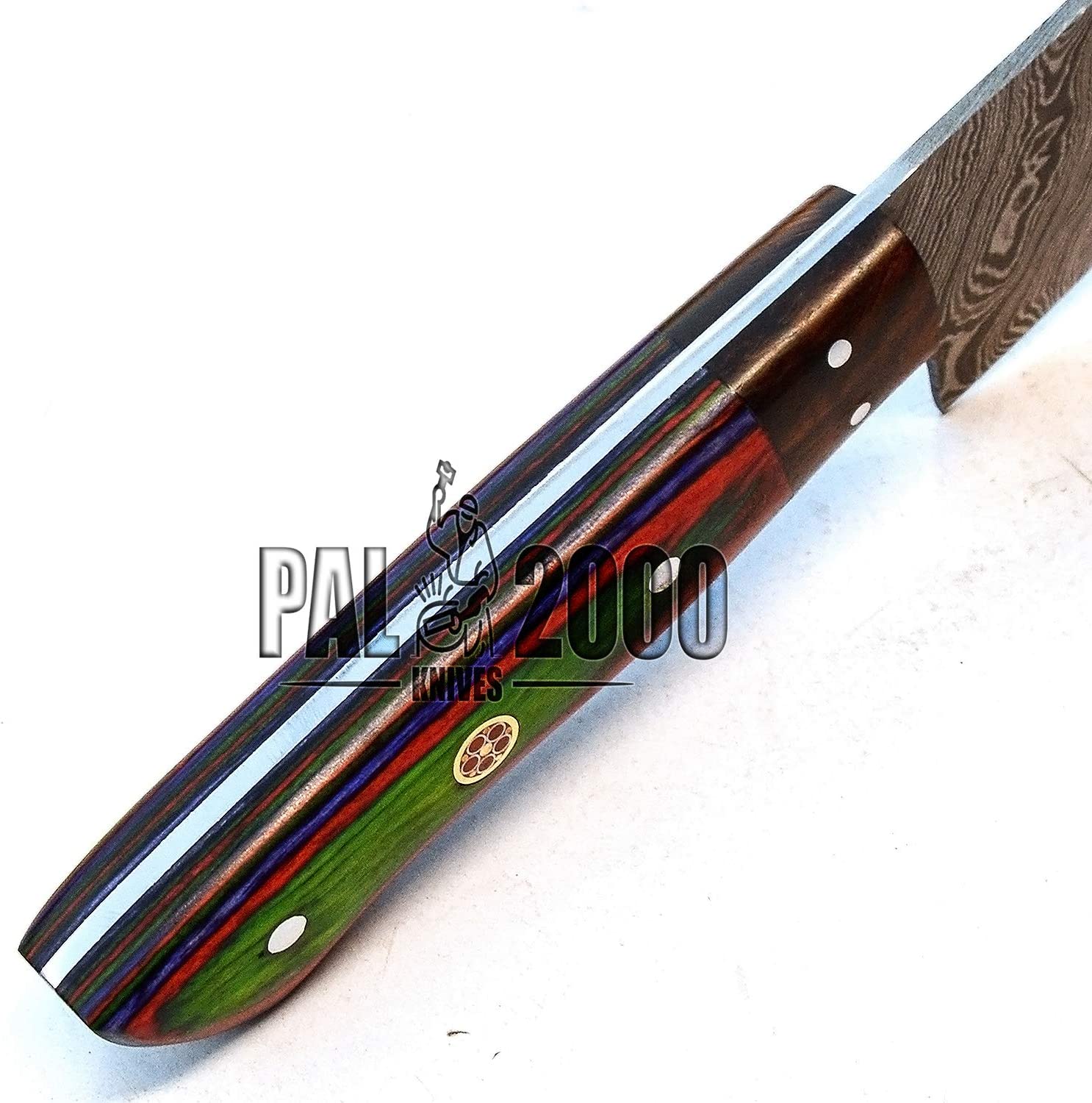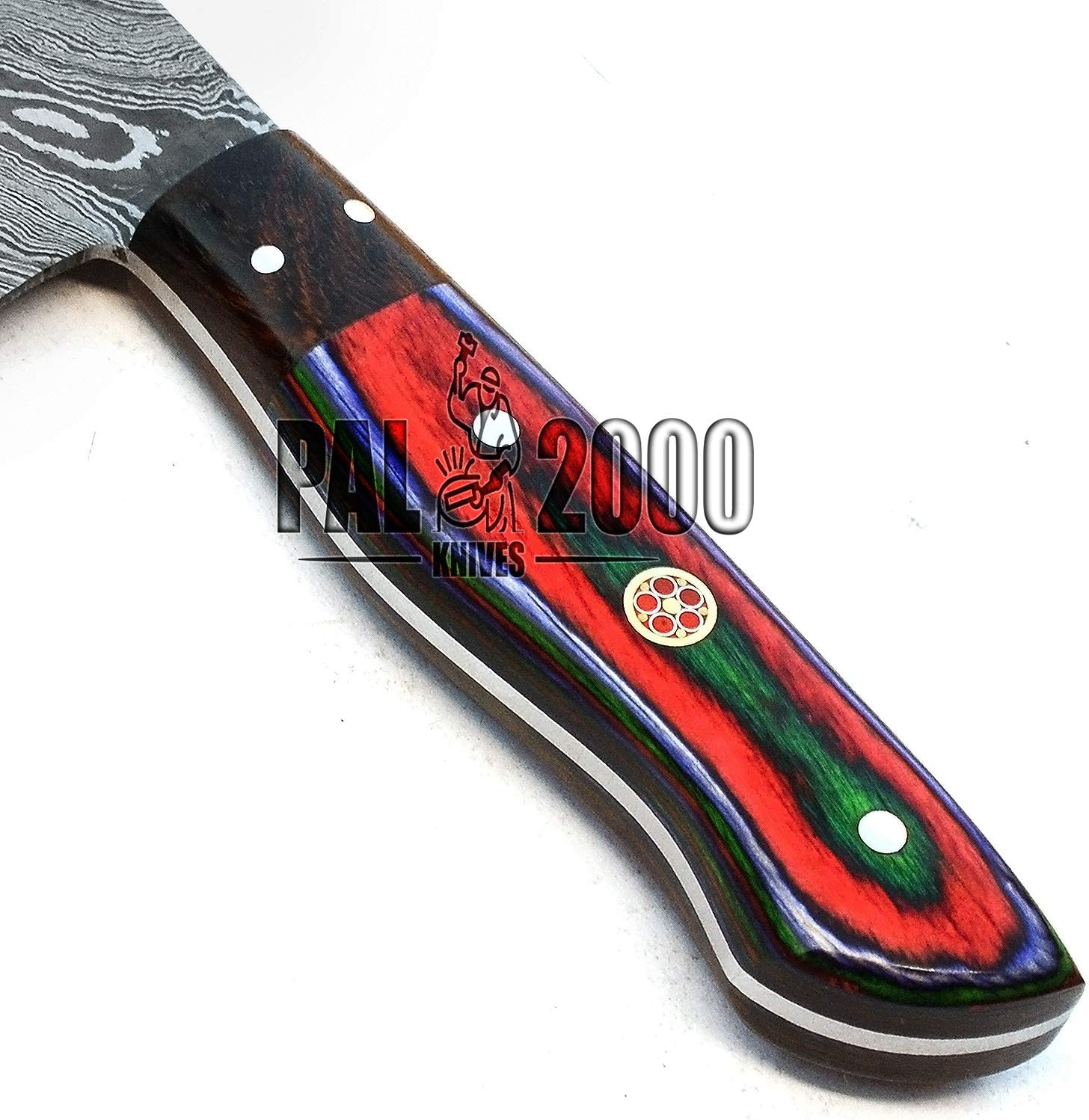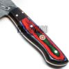 Overall Length is 14.00″ Long | Blade is 09.00″ Long | Handle is 05.00″ Long.All Our Items Are 100% Handmade And 100% Original Damascus Steel – If you have any type of question about our item please contact us.We forge all of our own. Damascus steel fromย 1095 / 15N20 Alloy Steel. Which are welded and folded many times to get the required pattern layers asย 352 true Layers. After forging all blades are normalized, profiled, annealed, ground surface, bevel ground, polished, buffed, etched, buffed final, sharpened, cleaned, oiled, and inspected at least 2 times along the way before being shipped. Heat treating system for 30% greater toughness and superior edge holding. , heat-treated to anย HRC 58/60.