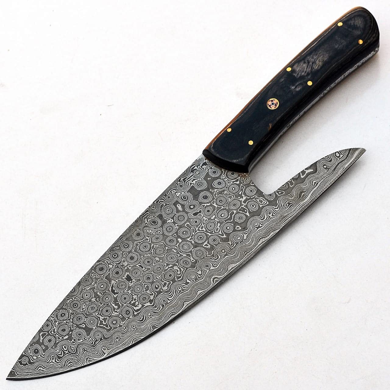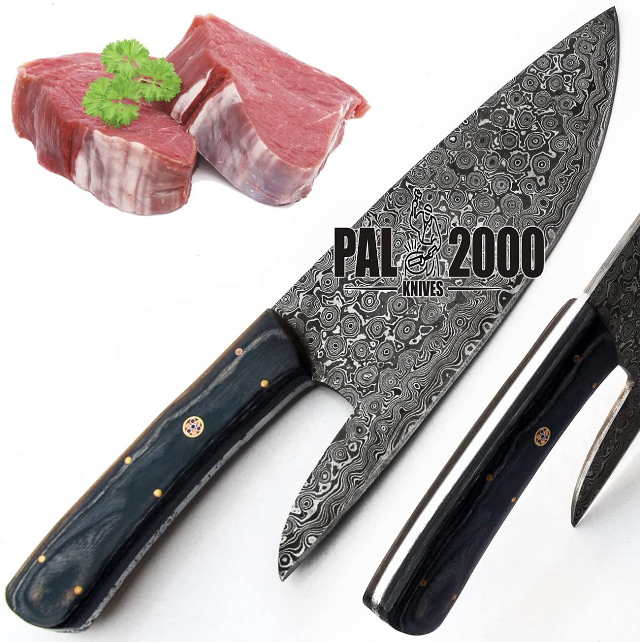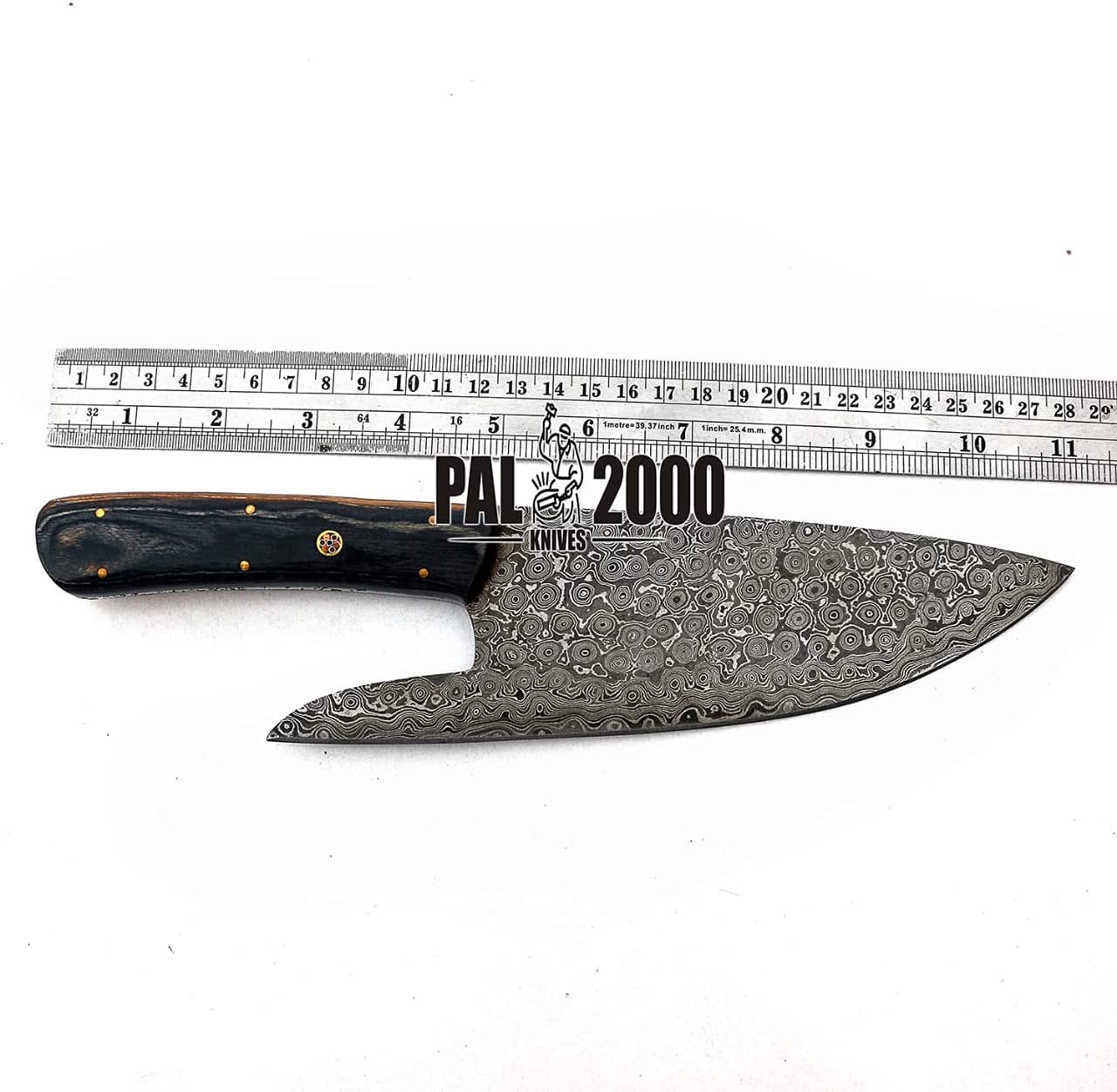 - Totale length 11 inches approx – blade length 6 inches approx and handle length 5 inches approx handle made of Color Wood with amazing hand work on the cleaver top quality balanced cleaver knife.We forge all of our own Damascus steel fromย 1095/15N20 Alloy Steel.ย Which are welded and folded many times to get requiredย layers as patternย 352 true Layers.After forging all blades are normalized, profiled, annealed, surface ground, bevel ground, polished, buffed, etched, final buffed, sharpened, cleaned, oiled, and inspected at least 2 times along the way before being shipped. Heat treating system forย 30% greater toughness andย superior edgeย holding. , heat treated to anย HRC 58/60.