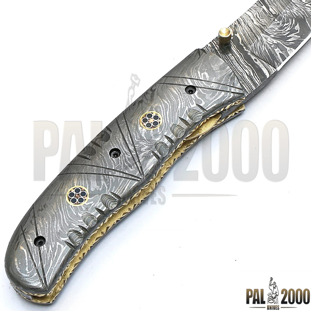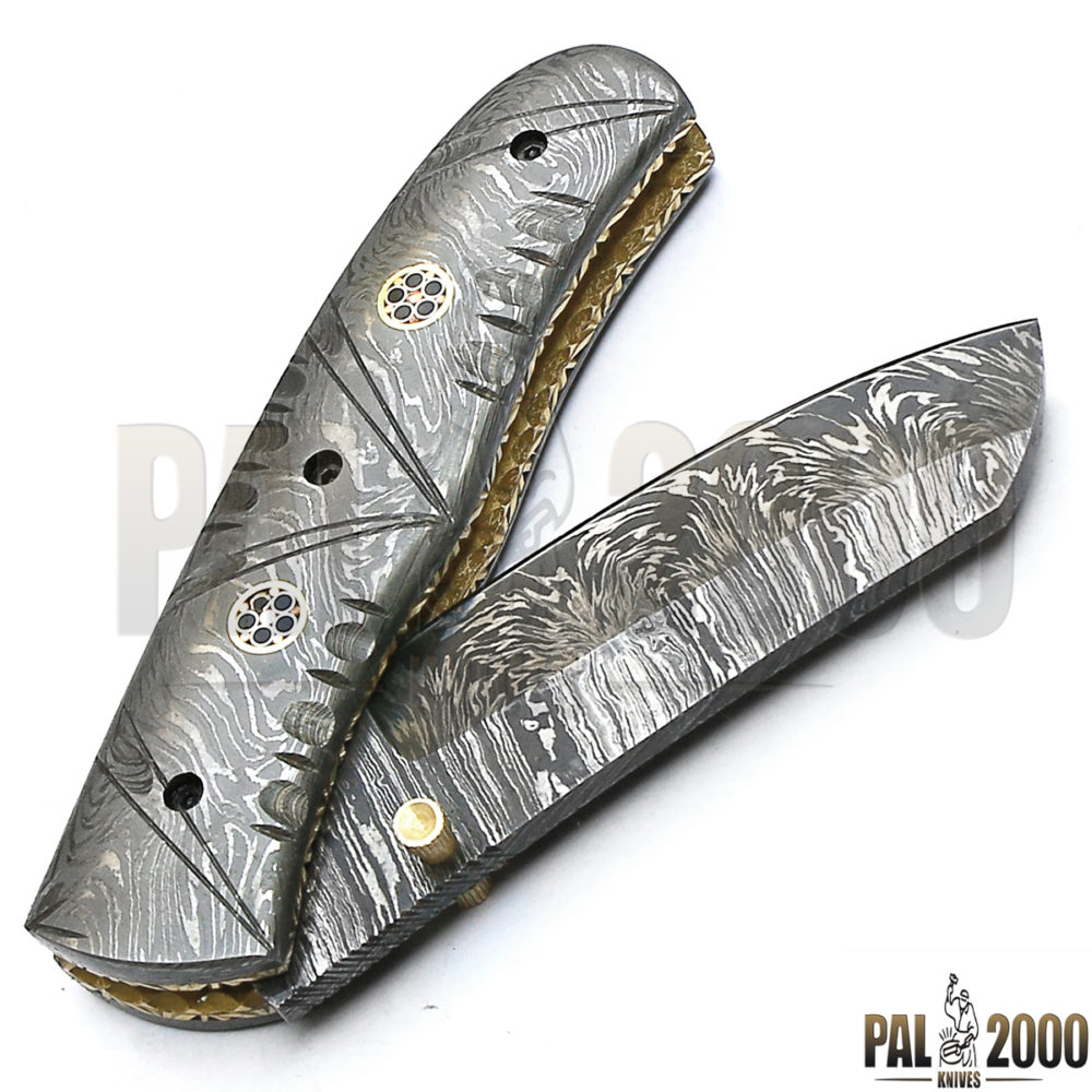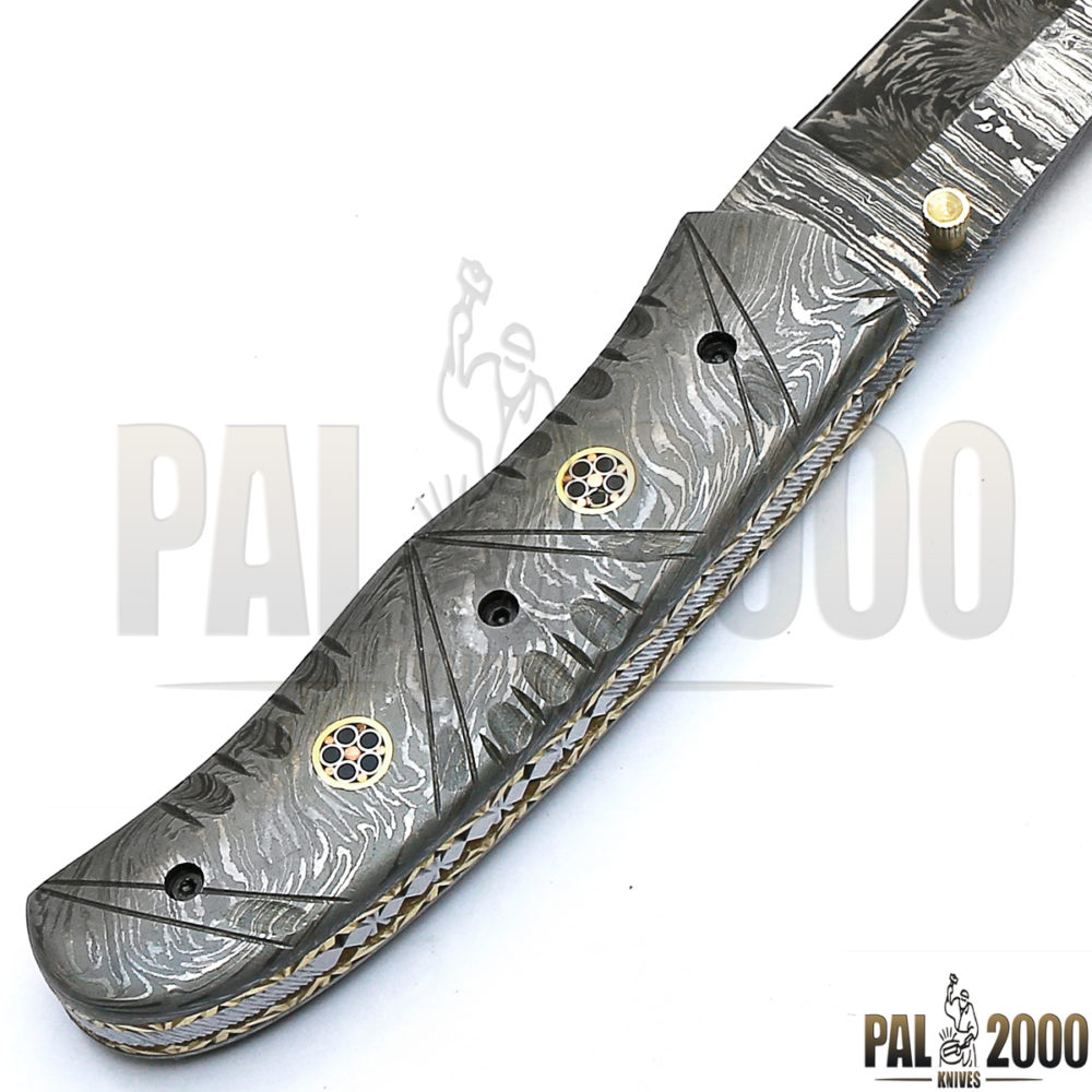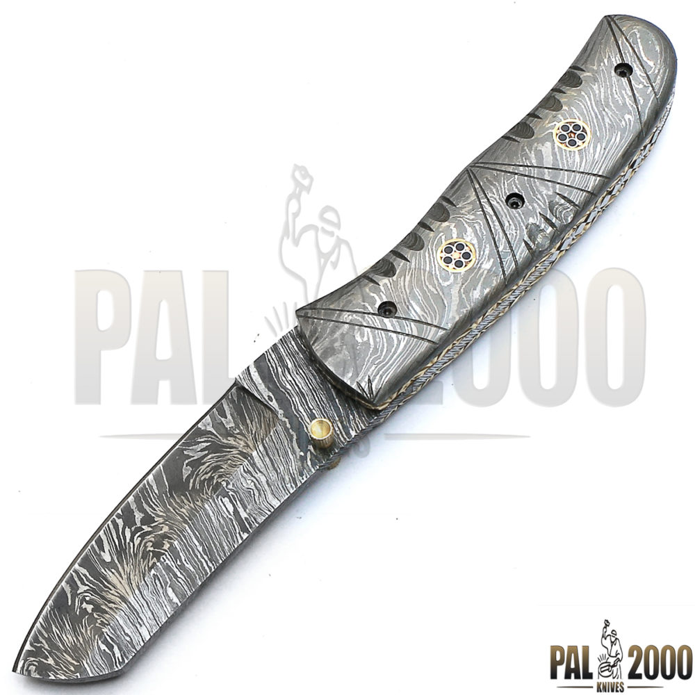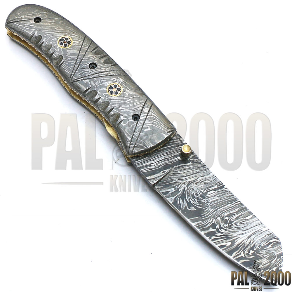 Beautiful Damascus Steel Folding Pocket Knife Top Quality And Leather Sheath