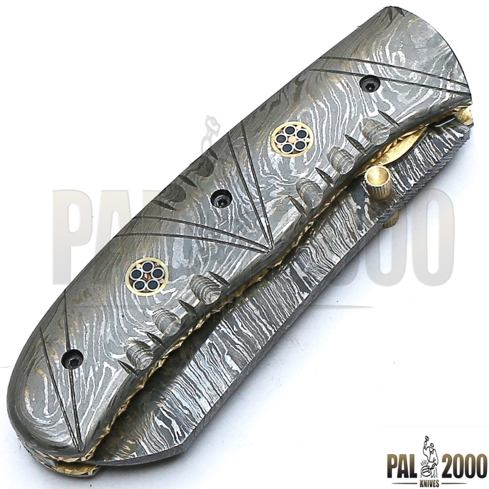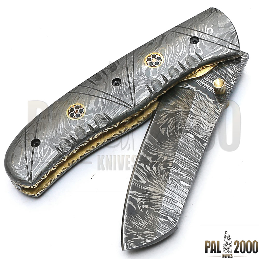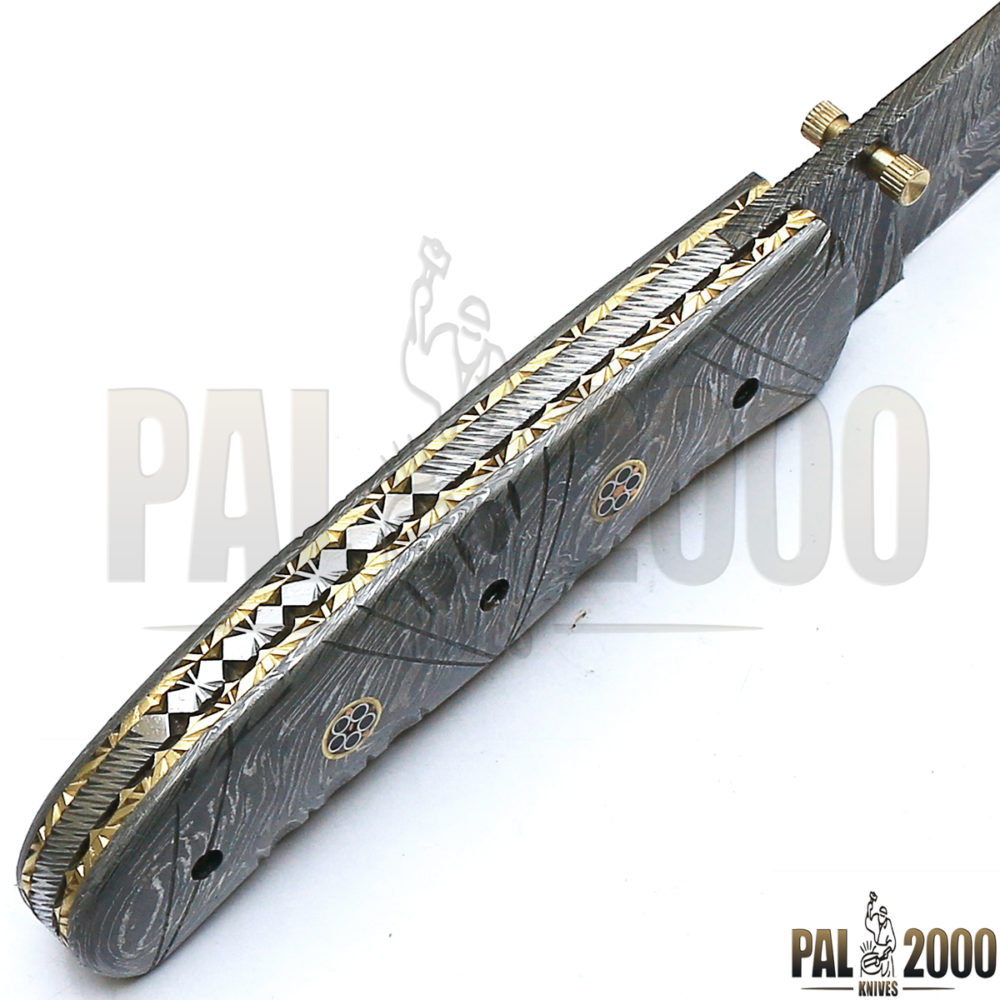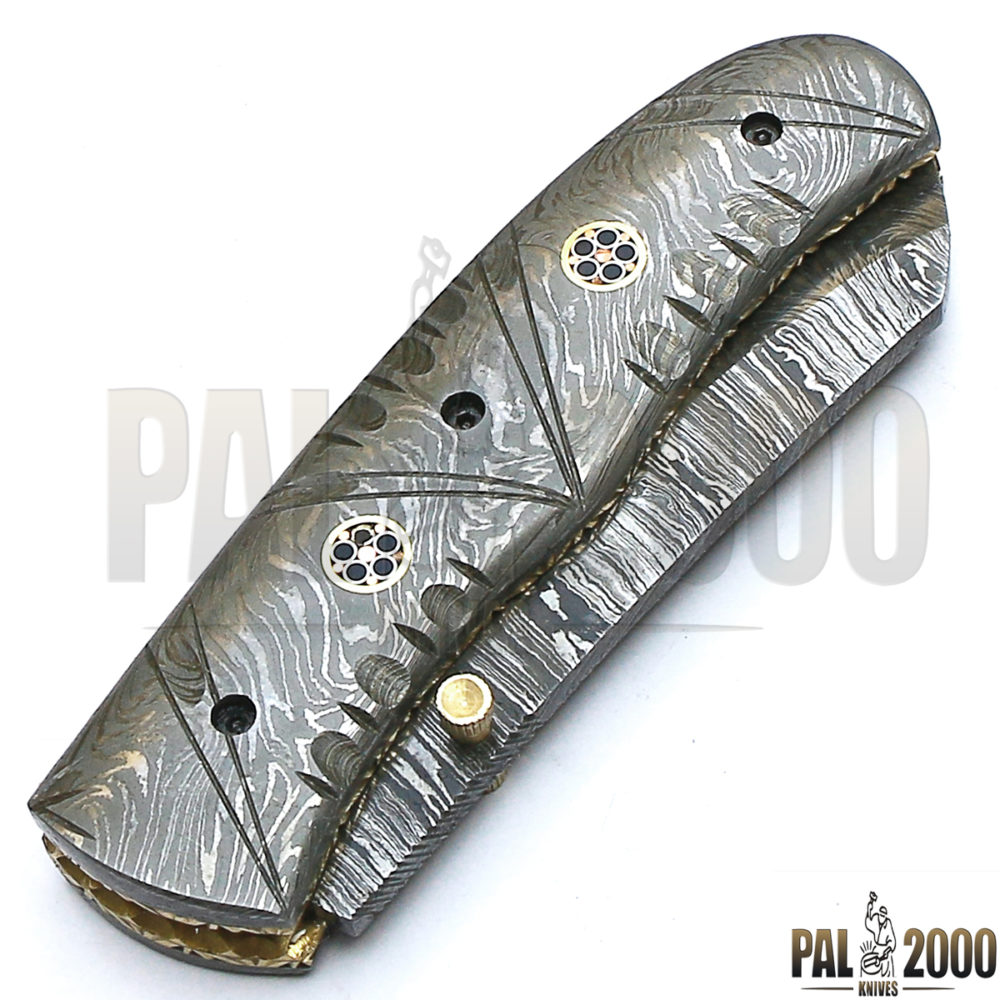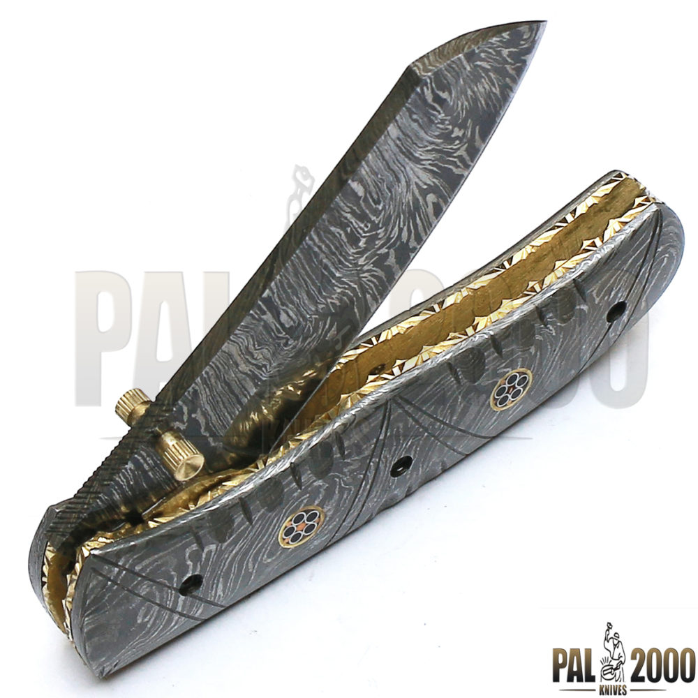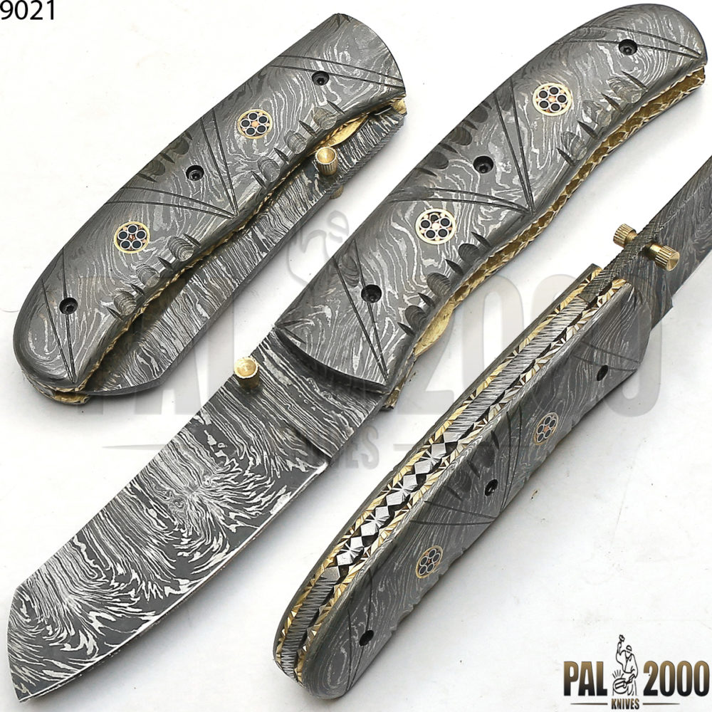 Beautiful Damascus Steel Folding Pocket Knife Top Quality And Leather Sheath