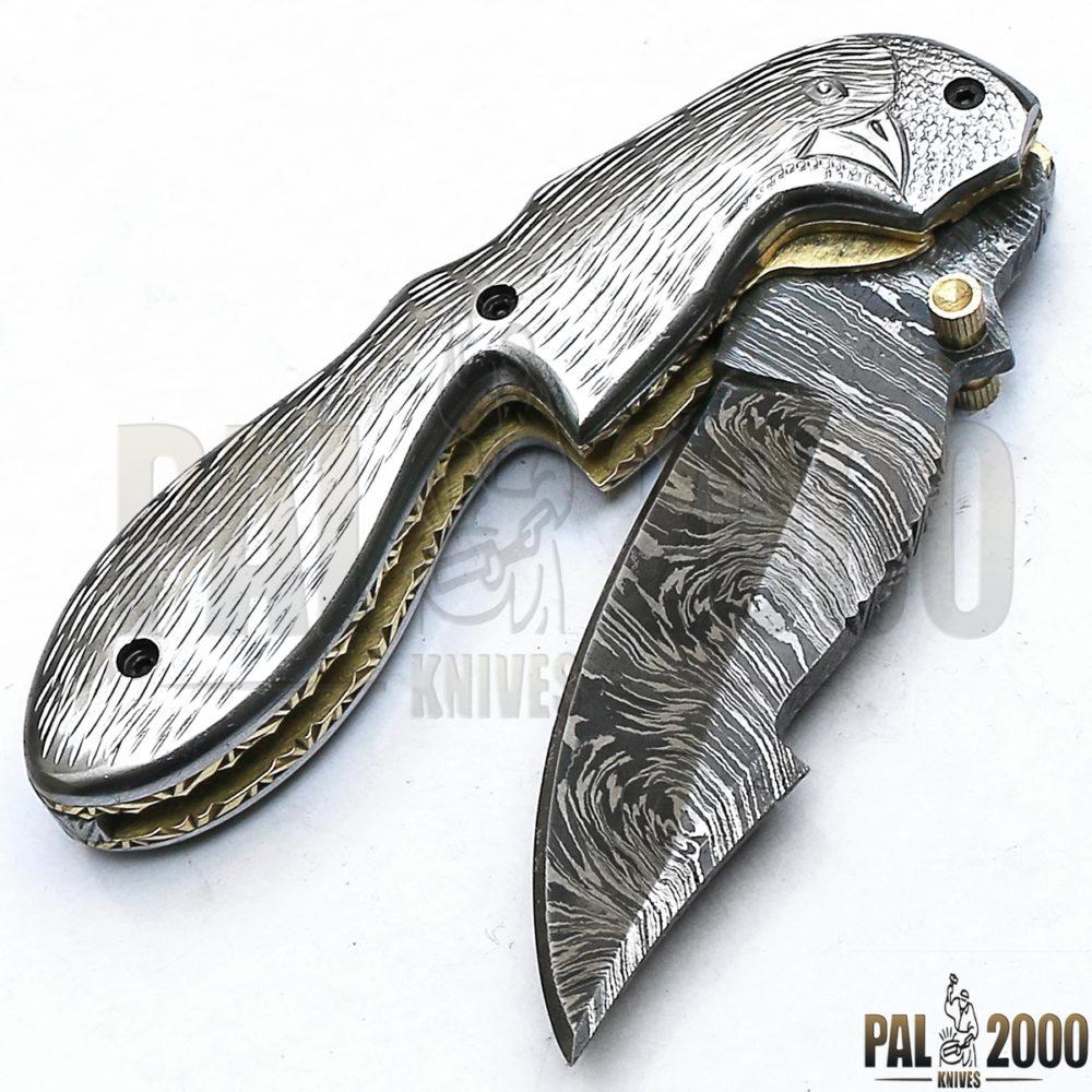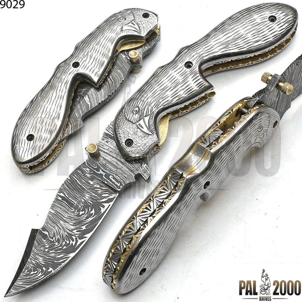 Folding Pocket Knives – Handmade Damascus Steel Blade Knife 9029